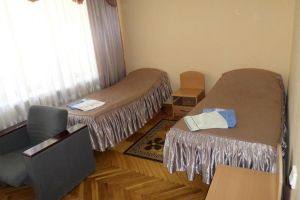 - Две кровати, шкаф, стол, стулья, тумбочки,ТВ,Х, с/у, душ с х/г водой в номере