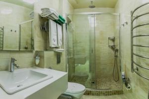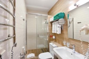 - Ванная комната оснащена: гигиеническими принадлежностями, зубными наборами, феном, полотенцами и напольными весами.