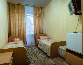 - 10кв.м, две 1-спальные кровати, ТВ, мини холодильник, с/у душ