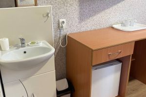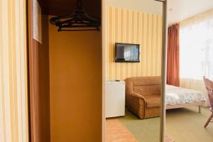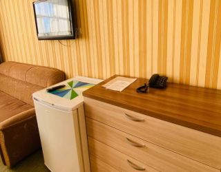 - 20 кв.м.; двуспальная кровать-трансформер, диван, ЖК-телевизор, мини холодильник, с/у ванна, фен, гладильная доска, утюг, кондиционер