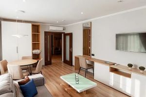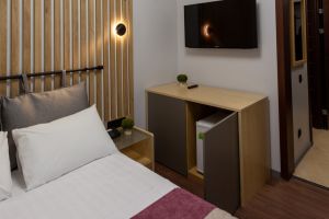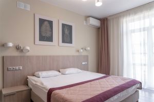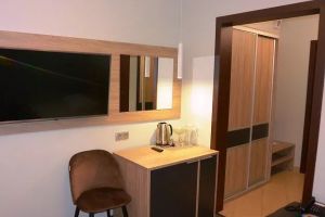 - двухспальная кровать, телевизор, холодильник, мягкая мебель, душевая кабина