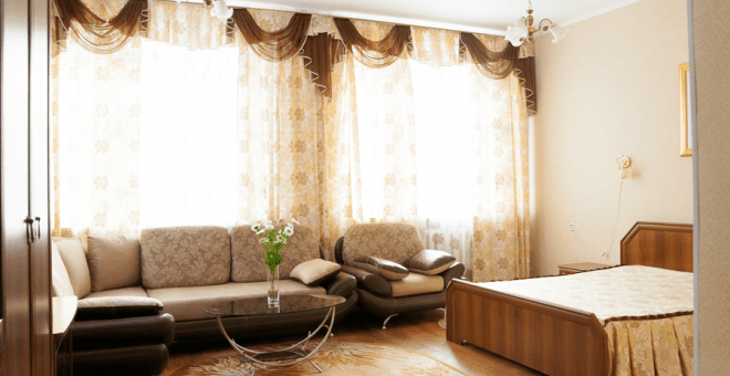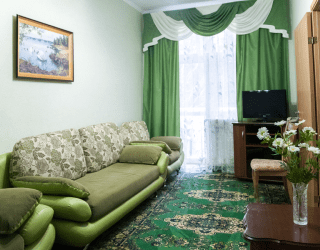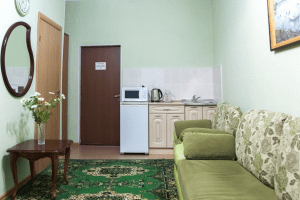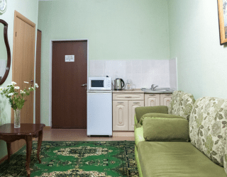 - 2-спальная кровать, диван, холодильник, чайник, ТВ, сейф, с/у с душем/ванной