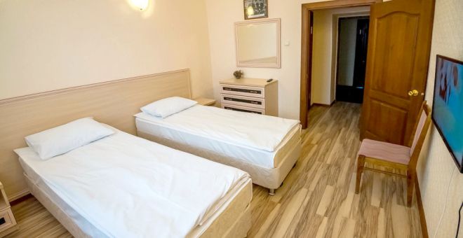 - 10 кв.м, 2 комнаты с удобствами на блок, три 1-спальные кровати, с/у на блок, Х, ТВ