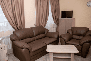 - 2-спальная или две 1-спальные кровати, диван, ТВ, холодильник, кондиционер, с/у, душ или ванная, сауна