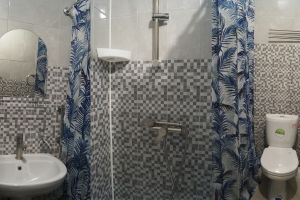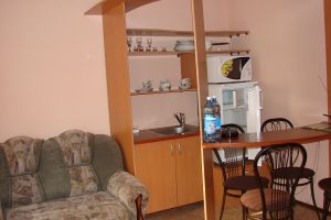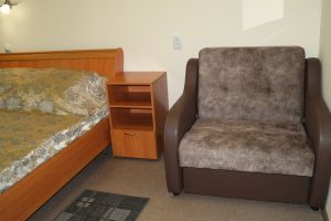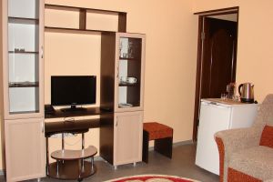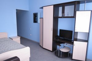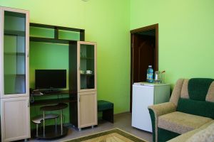 - Двуспальная кровать, раскладной диван, ТВ, кондиционер, холодильник, микроволновая печь, чайник, фен, с/у, угловая ванна