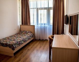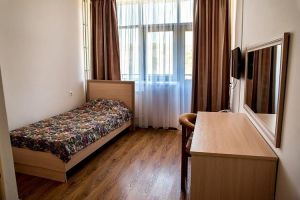 Уютный однокомнатный номер, оснащенный современной мебелью. Балкон с видом на Кавказский хребет или холмистую лесопарковою зону.