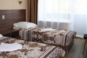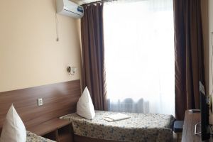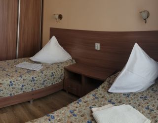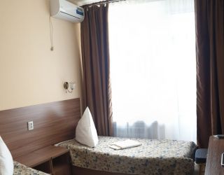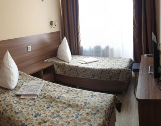 - Телевизор, сейф, кондиционер, холодильник, туалетные принадлежности, две односпальные кровати, рабочий стол, полотенца.