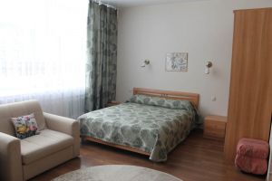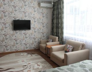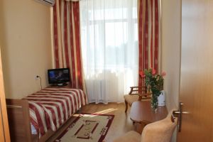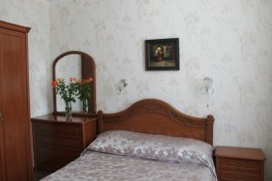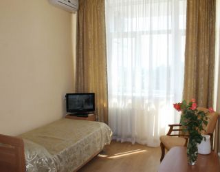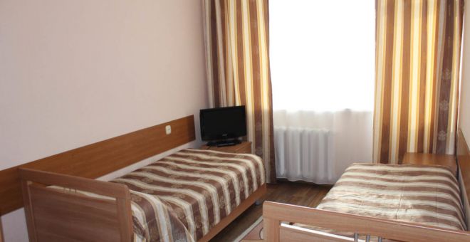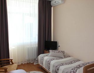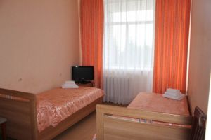 - две односпальные кровати, тумбочки, шкаф, телевизор. На 2 комнаты: холодильник, с/у с ванной
