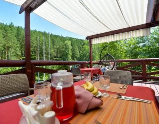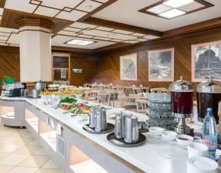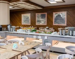 В санатории 3 варианта питания – это шведская линия, заказное меню и зал ресторанного обслуживания, для основных корпусов. А для проживающих в эко-отеле «Эхо», организовано питание в ресторане «Трапеза».
