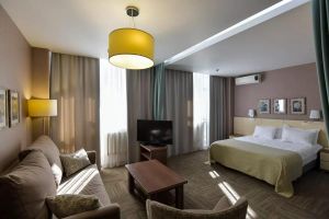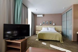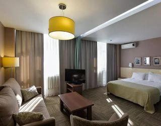 Просторный однокомнатный номер-студия площадью 36-39 квадратных метра, состоящий из трех зон: прихожая, гостиная и спальная зона. Оформлен в современном стиле, оборудован качественной и удобной мебелью, современной европейской сантехникой.В номере возможно комфортное размещение одного-двух гостей или семьи с детьми. Дополнительное размещение предлагается на раскладывающемся диване.