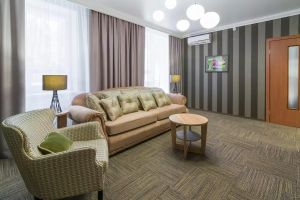 Трехкомнатный номер площадью 93 кв.м., состоящий из двух спален, просторной гостиной с кухонной зоной, комнаты отдыха, двух ванных комнат и гостевого санузла. В номере возможно комфортное размещение как одного-двух гостей, так и большой семьи.