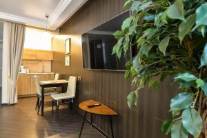Просторный двухкомнатный номер с кухонной зоной 46-49 кв.м., состоящий из спальни, просторной гостиной и кухонной зоны. Классический дизайн интерьера, атмосфера гармонии и уюта — здесь все способствует беззаботному отдыху.