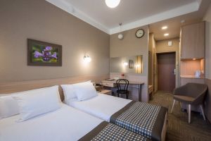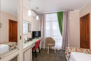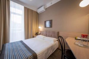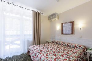 Уютный двухместный номер площадью от 14 квадратных метров, состоит из небольшой прихожей, комнаты, ванной комнаты с душем и балкона с кофейным столиком и стульями. Возможно комфортное размещение одного-двух гостей, а также дополнительное размещение взрослого или ребенка на евро-раскладушке.