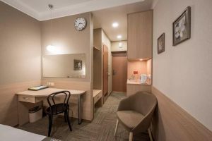 Уютный одноместный номер площадью от 14 до 19 квадратных метров. Состоит из небольшой прихожей, комнаты, санузла с душем, балкона с кофейным столиком и стульями.