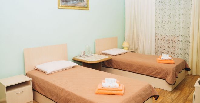 - Двуспальная кровать / 2 односпальные кровати, с/у, душ. Доп.место в номере с двуспальной кроватью.