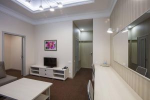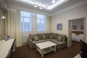 Люкс состоит из двух больших комнат оформленных в дизайнерском решении, создающих романтическую обстановку для гостей приезжающих сюда отдохнуть.