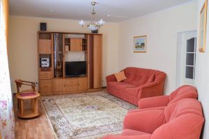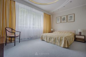 Оснащение номера: Спальни оборудованы двухспальными кроватями, тумба прикроватная, шкаф для одежды, комод и кресло, кондиционер, в гостиной установлен шкаф-стенка, диван раздвижной, журнальный столик, кресло, стул-ракушка, телевизор, холодильник, набор посуды. Имеются халаты, комплект полотенец, тапочки махровые, фен, электрочайник.