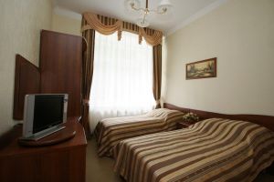 Номер оснащен стандартным набором гостиничной мебели и бытовой техники. В ванной комнате имеются санузел, душевая кабина, фен и ванные принадлежности для индивидуального пользования. Гладильная комната оборудована на этаже.