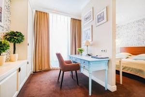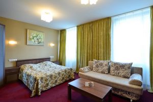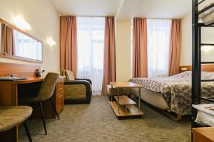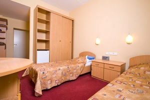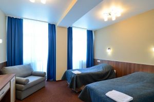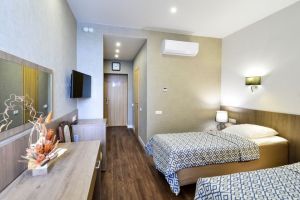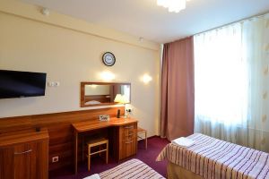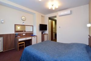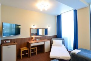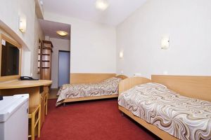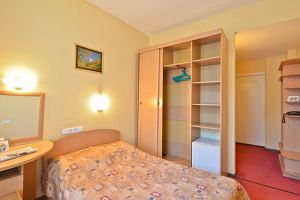Однокомнатный номер с балконом. В номере две кровати-трансформера, которые объединены в двуспальную (160-180 см).
