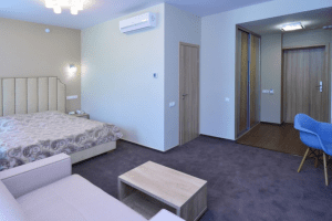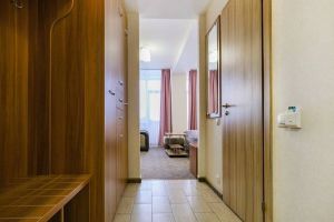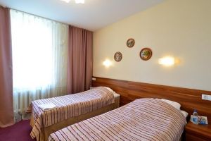 Однокомнатный номер с балконом. В номере две кровати-трансформера, которые объединены в двуспальную (160-180 см). Подходит для проживания двух гостей.