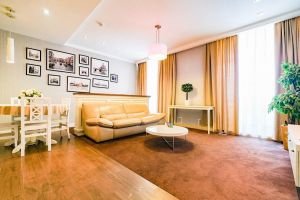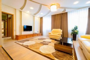 Роскошные апартаменты предназначены для отдыха премиального уровня. Элегантный номер предлагает гостям просторную гостиную с кухонной зоной, уютную спальню и два санузла. Отдельная душевая комната с теплыми полами, рабочая зона. Подходит для комфортного размещения до пяти гостей. В номере двуспальная кровать (160-180см), диван-кровать, раскладное кресло. Здесь есть балкон с видом на лес и горы, оснащенный кофейным столиком и стульями.