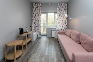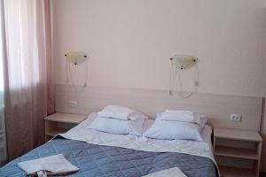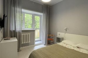 Однокомнатный номер для комфортного размещения 1 человека. В номере полутороспальная кровать. 6 этаж2-х комнатный люкс, с двуспальной кроватью и дополнительными местами на раскладном диване