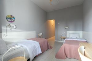 Стилизованные под эпоху 70 -х номера на 2 этаже с комфортабельной мебелью и современной сантехникой.Одноместные номера эконом уровня на 4 и 5 этажах. Возможно дополнительное размещение ребенка до 4 лет.