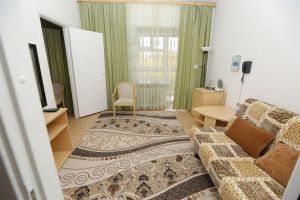 Прихожая, гостиная, одна спальня, рабочий кабинет. Два санузла . 2 осн. места + 2 доп. места (раскладушка). В стоимость входит четырехразовое питание, лечебные процедуры, досуговые мероприятия.