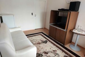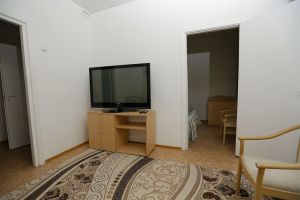 Прихожая (шкаф для одежды), гостиная (диван, ТВ, холодильник, телефон, набор посуды, фен), спальня (спальный гарнитур с одной двуспальной кроватью). WS, раковина, душевая кабина. 2 основных места + 1 дополнительных места (раскладушка).