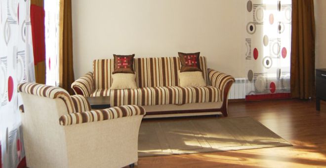 Комфортабельный номер с большой двухспальной кроватью и уголком отдыха