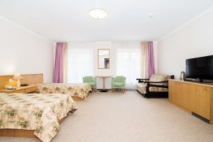 Количество комнат 1-комнатныйКоличество комнат 1-комнатныйТип номера СтандартныйВид из номера на городКол-во доп. мест 1 Кол-во основных мест 2 Площадь (кв. м) 20-25 Мебель вешалказеркалокреслакровати односпальныеприкроватные тумбочкистолик журнальныйстульяшкафОборудование телевизортелефончайный набор посудыэлектрочайникСанузел с ваннойтуалетные принадлежностифенхалатСервис Wi-Fi бесплатносмена полотенец: по требованиюсмена постельного белья: 1 раз в 3 дняуборка номера: 1 раз в 3 дняуслуги внутренней телефонной связиКоличество комнат 1-комнатныйКоличество комнат 1-комнатныйТип номера АпартаментыДополнительное место диванКол-во доп. мест 1 Кол-во основных мест 2 Площадь (кв. м) 90 Мебель вешалкадиванзеркалокровать двуспальнаяприкроватные тумбочкистолстульяшкафОборудование микроволновая печьмини-холодильникнабор посудытелевизортелефонэлектрочайникСанузел бидес ваннойтапочкитуалетные принадлежностифенхалатСервис Wi-Fi бесплатносмена полотенец: по требованиюсмена постельного белья: 1 раз в 3 дняуборка номера: 1 раз в 3 дняуслуги внутренней телефонной связиКоличество комнат 2-комнатныйТип номера ЛюксДополнительное место диванВид из номера на городКол-во доп. мест 3 Кол-во основных мест 2 Площадь (кв. м) 60 Мебель диванзеркалокреслакровать двуспальная/ две полутороспальные кроватиприкроватные тумбочкистолик туалетныйтумба под телевизоршкафМини-кухня Оборудование набор посудытелевизор ЖК: 2телефончайный набор посудыэлектрочайникСанузел бидес ваннойтапочкитуалетные принадлежностифенхалатСервис Wi-Fi бесплатносмена полотенец: по требованиюсмена постельного белья: 1 раз в 3 дняуборка номера: 1 раз в деньуслуги внутренней телефонной связиКоличество комнат 2-комнатныйКоличество комнат 2-комнатныйДополнительное место диванКол-во доп. мест 2 Кол-во основных мест 2 Площадь (кв. м) 90 Мебель вешалкадиванзеркалокровать двуспальнаяприкроватные тумбочкистолстульяшкафОборудование мини-холодильникнабор посудысейфтелевизортелефонСанузел с ваннойс душевой кабинойтапочкитуалетные принадлежностифенхалатСервис Wi-Fi бесплатносмена полотенец: по требованиюсмена постельного белья: 1 раз в 3 дняуборка номера: 1 раз в 3 дняуслуги внутренней телефонной связиКоличество комнат 1-комнатныйКоличество комнат 1-комнатныйТип номера СтудиоВид из номера на городКол-во основных мест 1 Корпус Площадь (кв. м) 20 Мебель вешалказеркалокровать односпальнаяприкроватная тумбочкастолстулшкафОборудование телевизор ЖКтелефончайный набор посудыэлектрочайникСанузел бидес ваннойтуалетные принадлежностифенхалатСервис Wi-Fi бесплатносмена полотенец: по требованиюсмена постельного белья: 1 раз в 3 дняуборка номера: 1 раз в 3 дняуслуги внутренней телефонной связиКоличество комнат 1-комнатныйКоличество комнат 1-комнатныйТип номера СтудиоДополнительное место еврораскладушкаВид из номера на городКол-во доп. мест 1 Кол-во основных мест 2 Площадь (кв. м) 25 Мебель вешалказеркалокреслокровать двуспальнаяприкроватные тумбочкистолик журнальныйстульяшкафОборудование телевизор ЖКтелефончайный набор посудыэлектрочайникСанузел с ваннойтуалетные принадлежностифенхалатСервис Wi-Fi бесплатносмена полотенец: по требованиюсмена постельного белья: 1 раз в 3 дняуборка номера: 1 раз в 3 дняуслуги внутренней телефонной связи