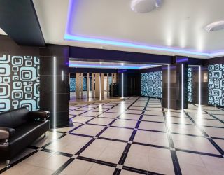 Просторный номер, состоящий из прихожей, большой ванной комнаты и жилой зоны свободной планировки с неизолированными друг от друга спальней и гостиной...