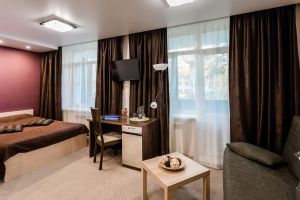 Просторный, уютный и современный номер для проживания двух человек. Предоставляется дополнительное место для ребенка в виде раскладушки или детской кроватки.