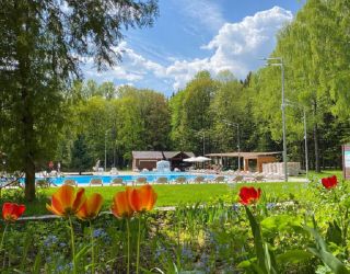 Ухоженные территория, которая окружена лесным массивом. Это место идеально подходит для спокойного и расслабляющего отдыха.