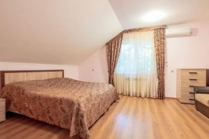 Просторный коттедж состоит из двух комнат и кухни. В одной комнате: двуспальная кровать (180 х 200), шкаф, 2 тумбы, телевизор, сплитсистема; 2 комната - гостиная с мягкой мебелью. Раздельный сан. узел. В кухне - обеденная группа, холодильник, электрочайник, микроволновая печь.