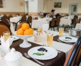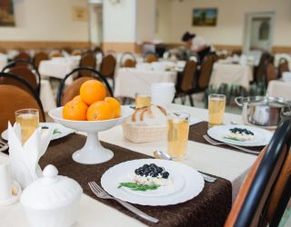 В санатории организовано полноценное четырехразовое питание по системе «полный пансион» с обслуживанием по системе «заказное меню». При этом отдыхающему на выбор предлагается несколько блюд. Это делается для удовлетворения вкусовых потребностей гостей, находящихся в здравнице.