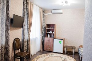 Однокомнатный двухместный номер с просторной лоджией. Прекрасно подойдет для семейного отдыха. Имеется возможность установки дополнительно раскладушки или детской кроватки