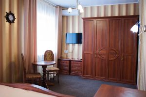 Двухкомнатный номер состоит из уютной гостиной, комфортабельной спальни, коридора и санузла. Имеется возможность установки дополнительно раскладушки или детской кроватки