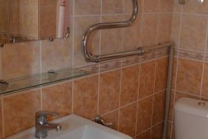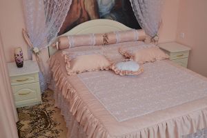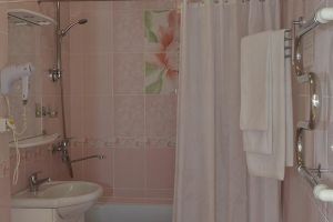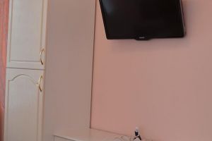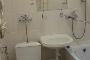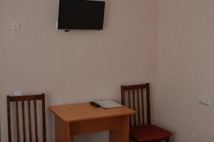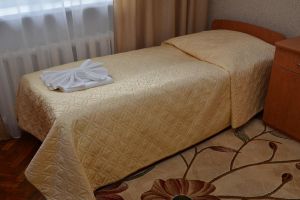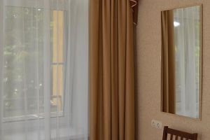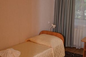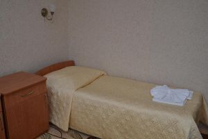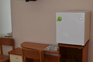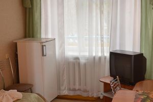 Однокомнатный номер, две односпальные кровати, холодильник,телевизор, набор столовой посуды, ванная комната (полуванна, унитаз, раковина). Балкон.