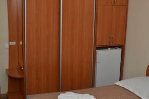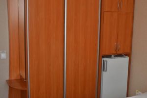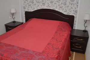 Однокомнатный номер, двуспальная кровать, холодильник, ЖК-телевизор, набор столовой посуды, ванная комната (ванна, унитаз, раковина). Балкон.