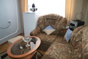 Номер расположен в основном здании, со всеми удобствами: туалет, ванна/душевая кабина в каждом номере проживания. В номере находится: холодильник, телевизор, двуспальная кровать, прикроватные тумбочки, шкаф для одежды, постельные принадлежности, мягкая мебель, чайник, набор посуды. Номер с балконом. Бесплатный Wi-fi.