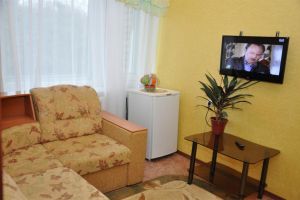 Номер расположен в основном здании, со всеми удобствами: туалет, ванна в каждом номере проживания. В номере находится: холодильник, телевизор, двуспальная кровать, прикроватные тумбочки, шкаф для одежды, постельные принадлежности, чайник, набор посуды. Номер с балконом. Бесплатный Wi-fi.