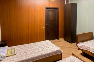 Номер для двоих гостей. В номере: 2 полутороспальные кровати, прикроватные тумбочки, стол, шкаф, 2 стула, удобства (душ, туалет), телевизор и холодильник