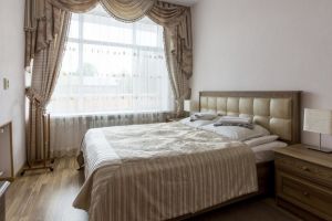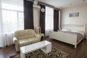 В номере: двуспальная кровать, ТВ (эфирное цифровое телевидение), прикроватные тумбочки, диван, журнальный столик, фен, холодильник, чайник, шкаф для одежды, кондиционер, балкон с видом на р.Волгу. Ванная комната: душевая кабина, биде, полотенца, мыло, шампунь