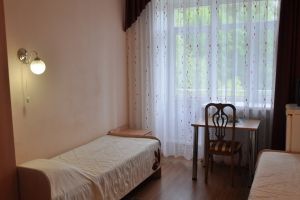 В номере: односпальная кровать, ТВ (эфирное цифровое телевидение), холодильник, прикроватная тумбочка, стол, шкаф для одежды, балкон с видом на р.Волгу или на территорию санатория. Ванная комната: душевая кабина/ванна, полотенца, мыло