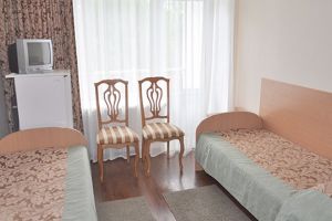 В номере: две односпальные кровати, ТВ (эфирное цифровое телевидение), холодильник, прикроватная тумбочка, стол, шкаф для одежды, балкон с видом на р.Волгу или на территорию санатория. Ванная комната: душевая кабина/ванна, полотенца, мыло