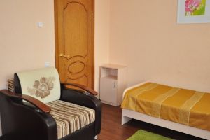 В номере: 2 комнаты, 2 односпальные кровати, кресло-кровать, ТВ (эфирное цифровое телевидение), прикроватная тумбочка, стол, холодильник, чайник, шкаф для одежды, балкон с видом на р.Волгу. Ванная комната: ванна, полотенца, мыло
