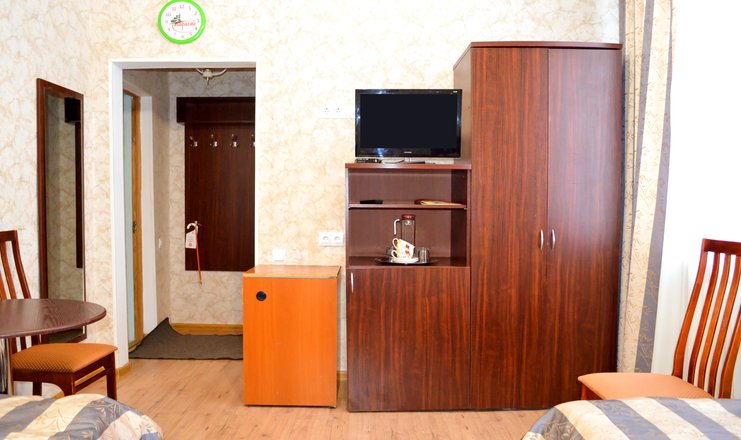 Количество комнат 1-комнатныйТип номера ПолулюксДополнительное место кровать: место на основной кроватиКол-во доп. мест 1 Кол-во основных мест 1 Площадь (кв. м) 29 Мебель кровать двуспальнаяприкроватные тумбочкистолстулшкафОборудование набор посудысейфтелевизорхолодильникэлектрочайникСанузел с душемфенСервис Wi-Fi бесплатносмена полотенецсмена постельного бельяуборка номераКоличество комнат 1-комнатныйКоличество комнат 1-комнатныйТип номера ПолулюксДополнительное место кровать: место на основной кроватиКол-во доп. мест 1 Кол-во основных мест 1 Площадь (кв. м) 23 Мебель кровать двуспальнаяприкроватные тумбочкистолстулшкафОборудование набор посудысейфтелевизорхолодильникэлектрочайникСанузел с джакузифенСервис Wi-Fi бесплатносмена полотенецсмена постельного бельяуборка номераКоличество комнат 1-комнатныйКоличество комнат 1-комнатныйТип номера ПолулюксДополнительное место раскладной диванКол-во доп. мест 2 Кол-во основных мест 2 Площадь (кв. м) 26 Балкон Мебель диван раскладнойкровати односпальныеприкроватные столикистолстулшкафОборудование набор посудысейфтелевизорхолодильникэлектрочайникСанузел с душемфенСервис Wi-Fi бесплатносмена полотенецсмена постельного бельяуборка номераКоличество комнат 2-комнатныйКоличество комнат 2-комнатныйТип номера ПолулюксДополнительное место диванКол-во доп. мест 3 Кол-во основных мест 2 Площадь (кв. м) 30,5 Балкон Мебель диван раскладнойкровати односпальные /одна двуспальная кроватьприкроватные тумбочкистолстулшкафОборудование набор посудысейфтелевизорхолодильникэлектрочайникСанузел с душемфенСервис Wi-Fi бесплатносмена полотенецсмена постельного бельяуборка номераКоличество комнат 1-комнатныйКоличество комнат 1-комнатныйТип номера СтандартныйДополнительное место кровать: место на основной кроватиКол-во доп. мест 1 Кол-во основных мест 1 Площадь (кв. м) 15,5 Балкон Мебель кровать двуспальнаяприкроватные тумбочкистолстулшкафОборудование набор посудысейфтелевизорхолодильникэлектрочайникСанузел с душемСервис Wi-Fi бесплатносмена полотенецсмена постельного бельяуборка номераКоличество комнат 1-комнатныйКоличество комнат 1-комнатныйТип номера СтандартныйДополнительное место кровать: место на основной кроватиКол-во доп. мест 1 Кол-во основных мест 1 Площадь (кв. м) 17 Мебель кровать двуспальнаяприкроватные тумбочкистолстулшкафОборудование набор посудысейфтелевизорхолодильникэлектрочайникСанузел с душемфенСервис Wi-Fi бесплатносмена полотенецсмена постельного бельяуборка номераКоличество комнат 1-комнатныйКоличество комнат 1-комнатныйТип номера СтандартныйДополнительное место диван и кроватьКол-во доп. мест 3 Кол-во основных мест 1 Площадь (кв. м) 18 Мебель диван раскладнойкровать двуспальнаяприкроватные тумбочкистолстульяшкаф-купеОборудование гладильная доскамини-холодильниксейфтелевизорутюгчайный набор посудыэлектрочайникСанузел с душевой кабинойфенСервис Wi-Fi бесплатносмена полотенецсмена постельного бельяуборка номераКоличество комнат 1-комнатныйКоличество комнат 1-комнатныйТип номера СтандартныйКол-во основных мест 2 Площадь (кв. м) 17 Мебель кровати односпальныеприкроватные тумбочкистолстулшкафОборудование набор посудысейфтелевизорхолодильникэлектрочайникСанузел с душемСервис Wi-Fi бесплатносмена полотенецсмена постельного бельяуборка