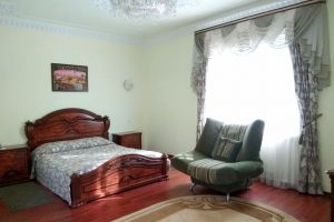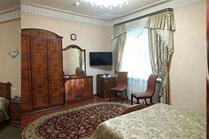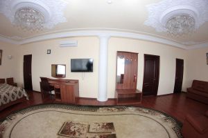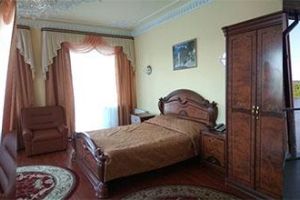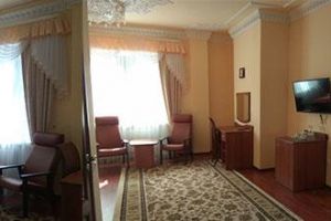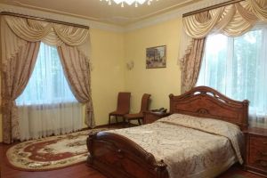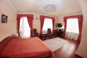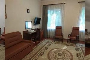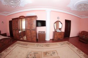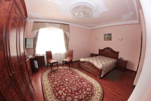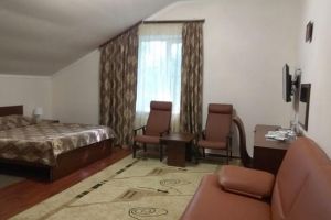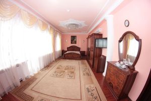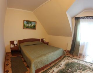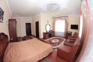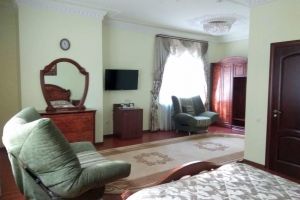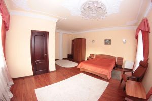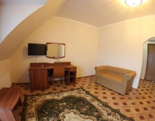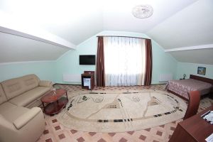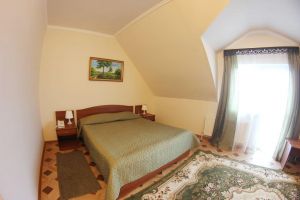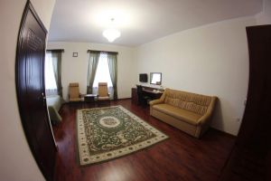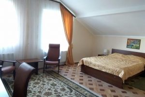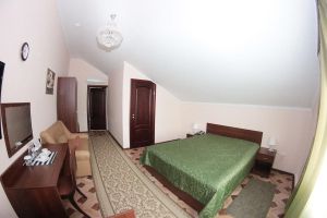 Номер с видом на лес. В номере: Мини-холодильник, ТВ, кондиционер, шкаф для одежды резной, комод с зеркалом, кресло тканевое мягкое (2шт), 2-х спальная кровать резная (160*200), тумбочка прикроватная резная (2шт). Посуда: набор на 2 персоны - чайные пары, чайные ложки. Кувшин для сока, бокалы.
