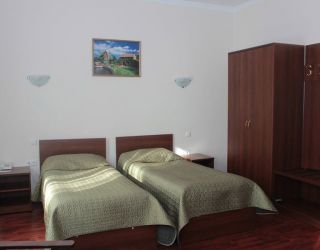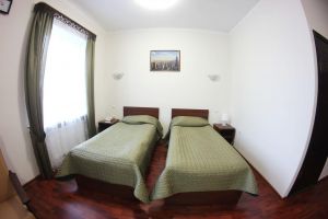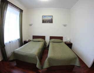 Номер с видом на лес. В номере: Мини-холодильник, ТВ, кондиционер, кресло деревянное кожаное с подлокотником (2шт), журнальный столик, туалетный столик с зеркалом, 1-спальная кровать (2шт), тумбочка прикроватная (2шт).Посуда: набор на 2 персоны - чайные пары, чайные ложки. Кувшин для сока, бокалы.